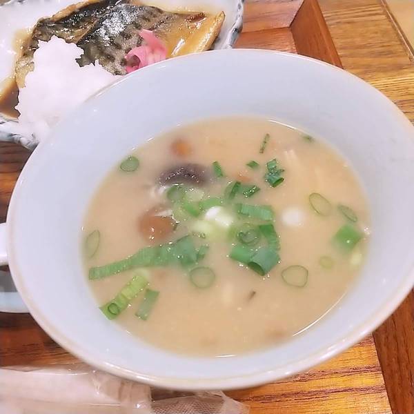 汁物はキノコの味噌汁でした。こちらも家庭の味、優しい味付けでgood。